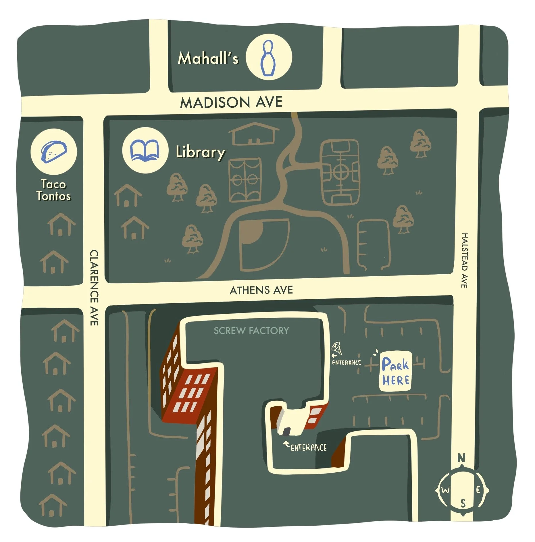 The Lakewood Screw Factory has two freight elevators that require special permission to use. If you or your clients need an elevator, please let us know ahead of time so we can make arrangements.
